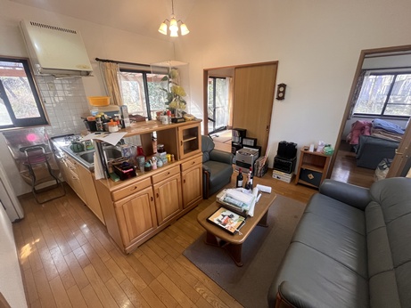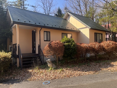 平成10年12月築、2LDKの平家建 リビングは定番の吹抜けと人気のカウンターキッチン 土地面積133坪の平坦地 管理別荘地内のメインロード沿い |