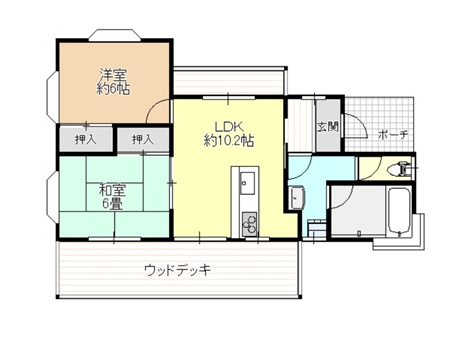 新築年月/平成10年12月 建物面積/52.99㎡(16.02坪) 間取り/2LDK(LDK約10.2、洋6、和6) |