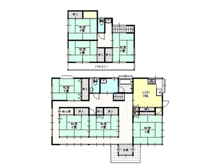 平成10年築・建物面積48坪超の7DK 部屋数が多く大家族にも適しています 7DK(DK8帖、和8畳、和6畳×6) 無垢材を使った和風住宅 小高い場所にあり日当たり良好 駐車スペース1台分 |