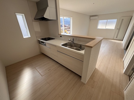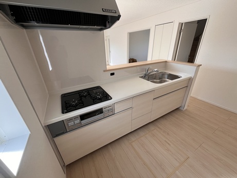 令和8年4月完成予定 木造アスファルトシングル葺2階建 4SLDK 浄水器一体型システムキッチン、浴室暖房乾燥機付ユニットバス、シャワー付洗面化粧台、温水洗浄便座、TVモニターホン、ペアガラス、ルーフバルコニー、郵便受け |