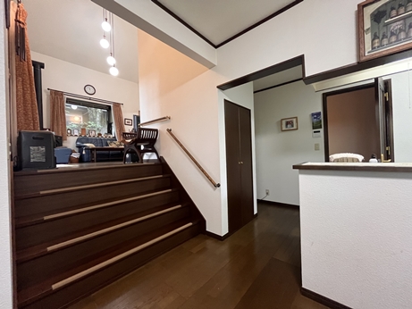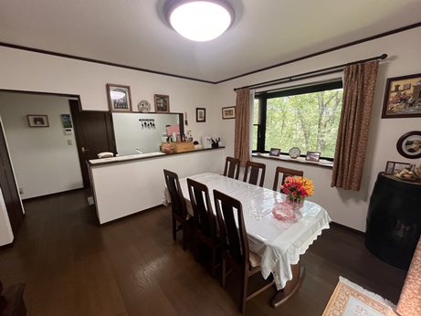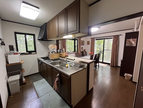 L約8帖+和室4.5畳の続き間で約12.5帖のリビング カウンターキッチンのダイニングは約11.5帖 2階洋室8帖+和室8畳 綺麗な室内 薪ストーブ、吹抜、カウンターキッチン、ウッドデッキ ウッドデッキも広くBBQなども楽しめます